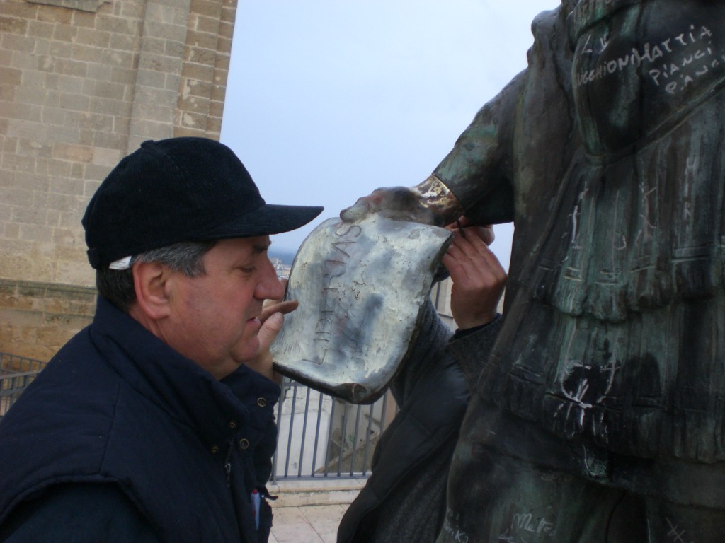 Giovanni Lomartire, noto artigiano, nonchè capitano del Rione Giudea, il 22 febbraio scorso aveva provveduto a restaurare a proprie spese la statua di Costantino ubicata in Piazza Cattedrale. In pratica aveva "riattaccato" la mano destra che alcuni anni addietro era stata staccata da ignoti.